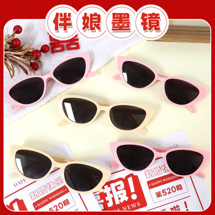 晨袍女新娘结婚拍照道具伴娘猫眼墨眼镜婚礼高级氛围感小众装饰