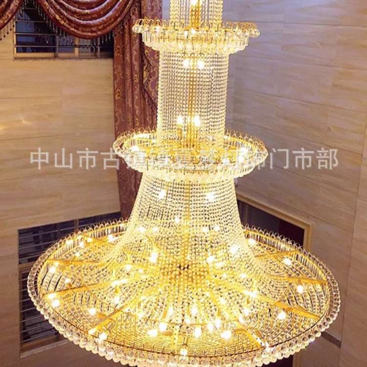 复式楼大吊灯欧式别墅客厅灯水晶灯酒店大厅灯具中空楼中楼长吊灯