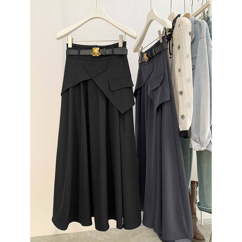 不规则灰色西装半身长裙女2025春季新款复古a字高腰显瘦大摆伞裙
