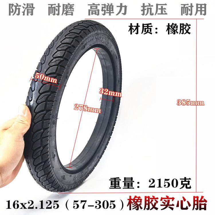 16x1.75实心胎 16寸电动车免充气防爆轮胎16x2.125/3.0实心轮胎