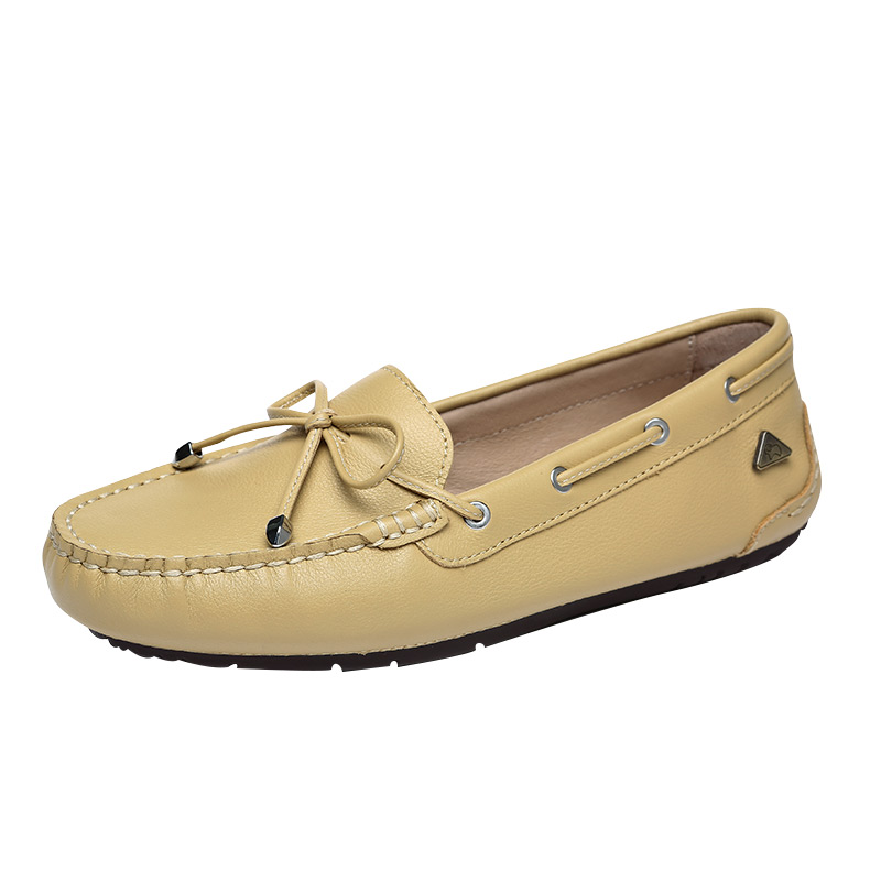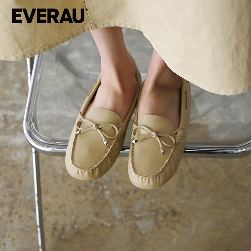 EVERAU乐福鞋女2025新款浅口豆豆鞋轻便真皮一脚蹬平底单鞋EA1015