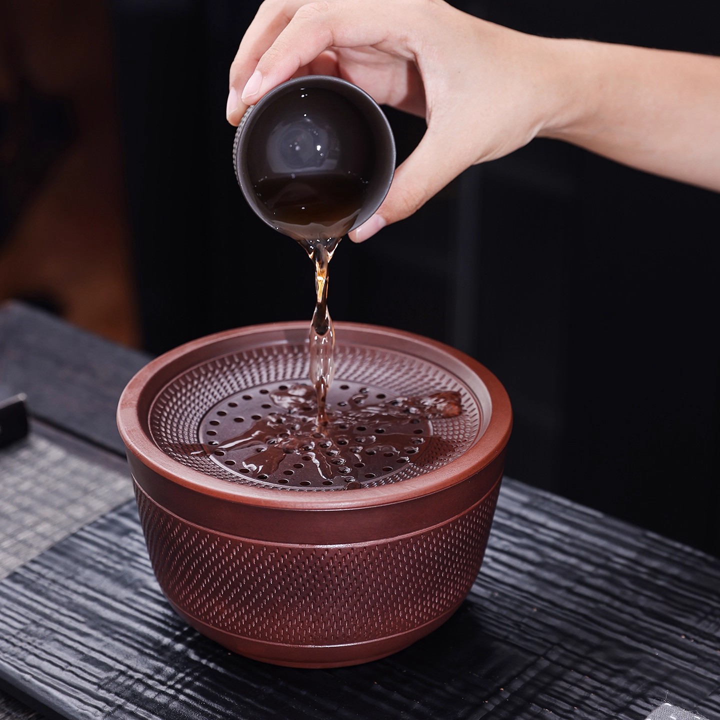 复古建水紫陶茶渣缸家用茶台茶叶废水桶茶洗缸茶渣桶茶道茶具配件