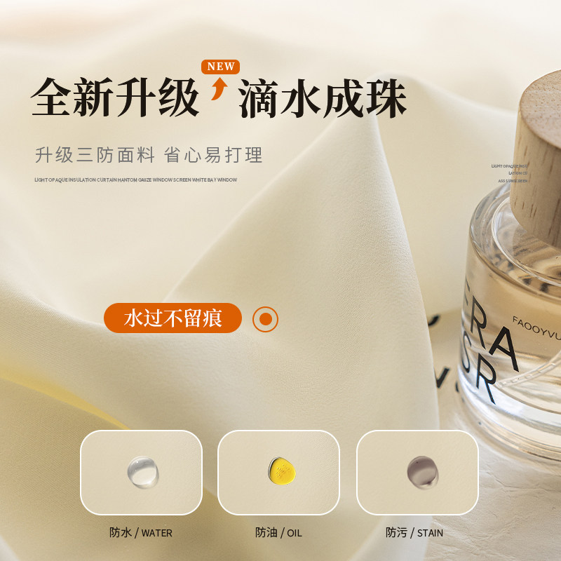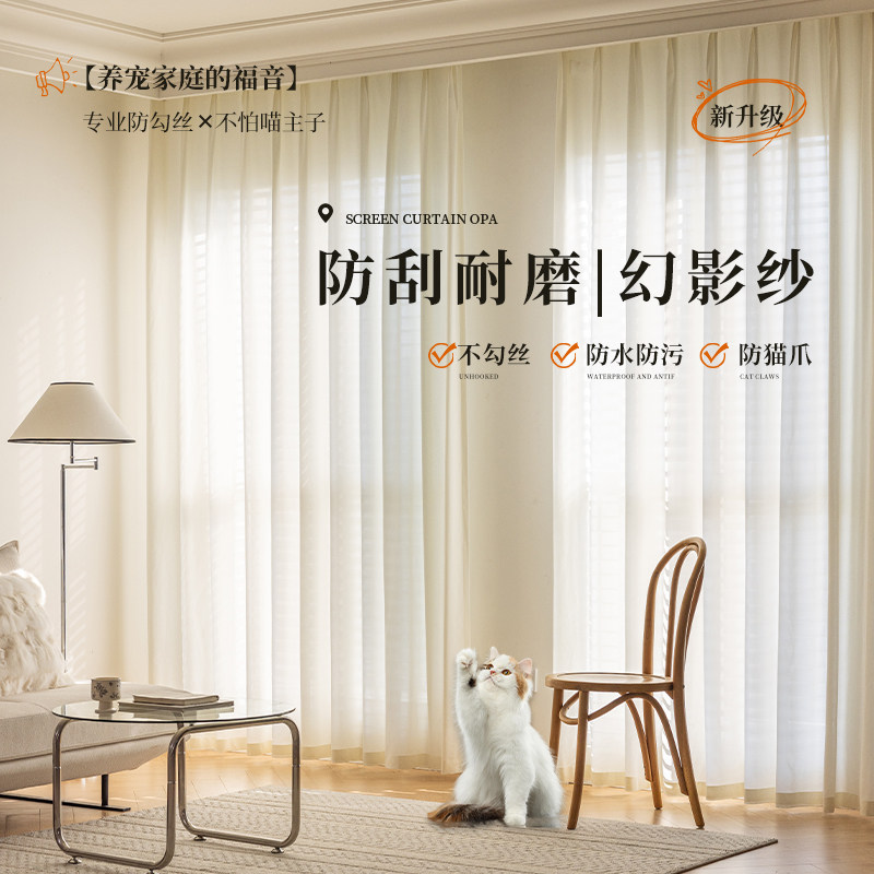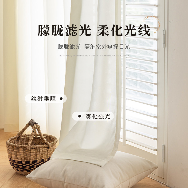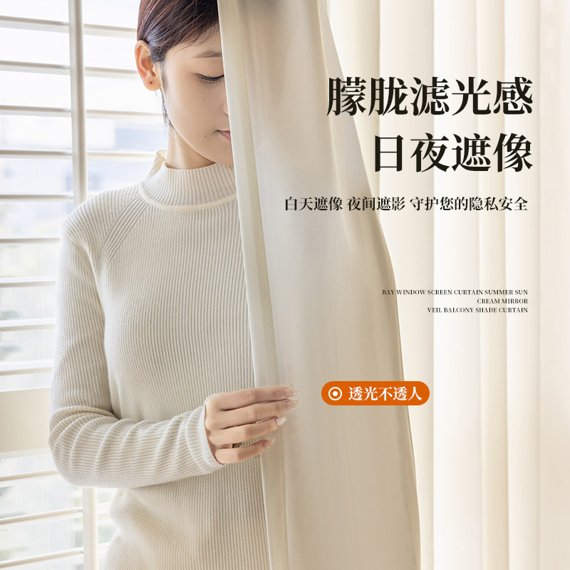 阳台白纱三防纱透光不透人纱帘窗纱防晒隔热奶油色幻影纱窗帘客厅