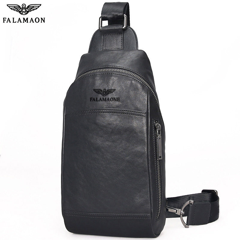法莱阿玛尼真皮胸包男单肩斜挎包时尚休闲胸前商务背包头层牛皮