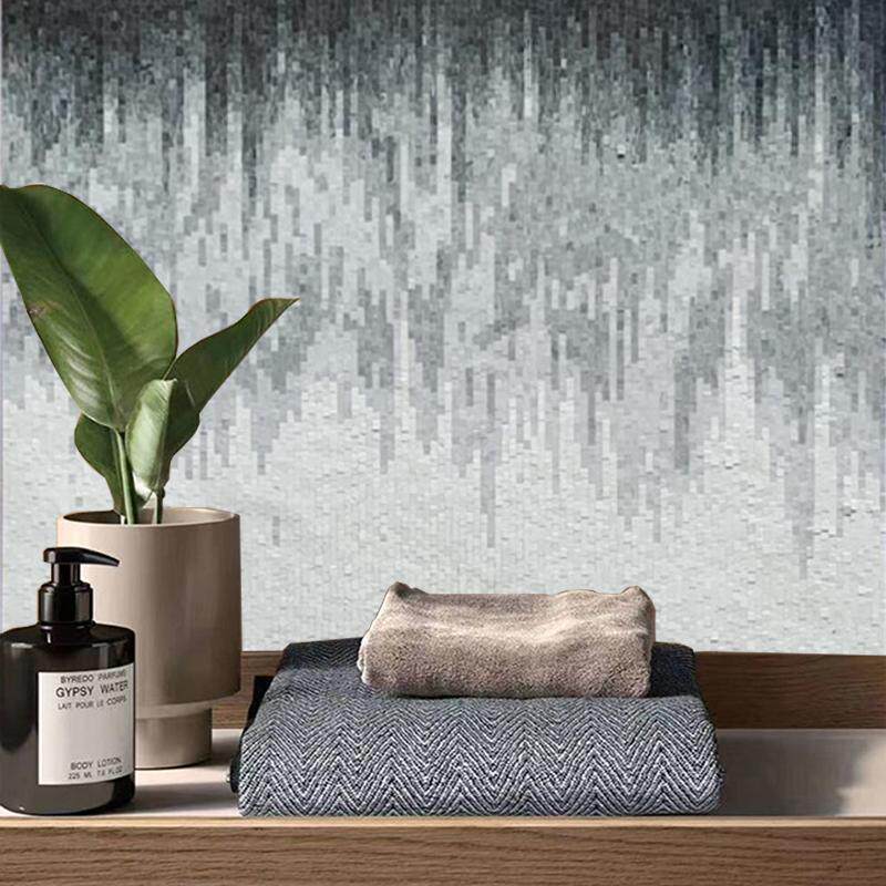 现代简约长条渐变马赛克瓷砖背景墙玄关剪画别墅酒店浴室拼图拼花