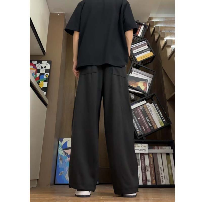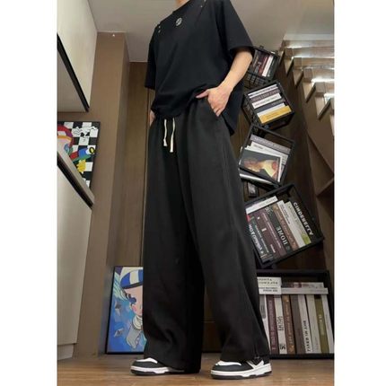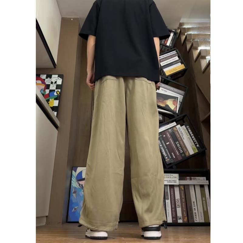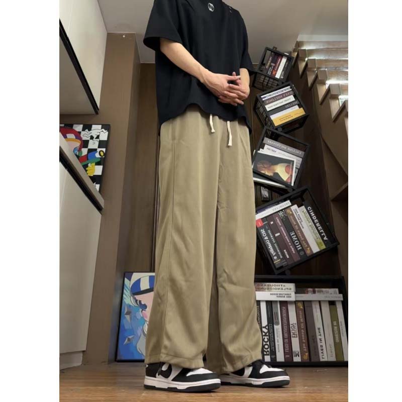 卡其色直筒阔腿裤子男生基础款春秋季宽松垂感青少年休闲裤运动潮