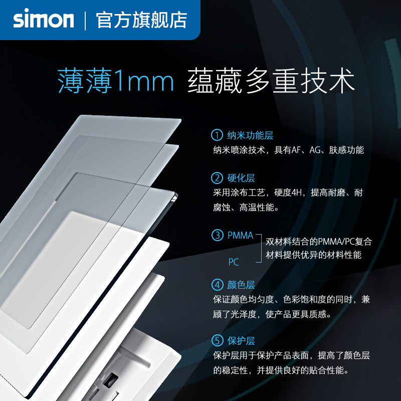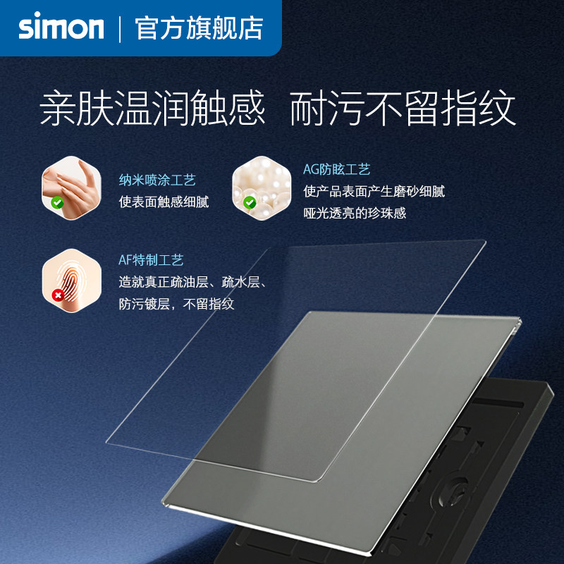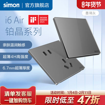 西蒙超薄开关插座i6Air铂晶一开五孔16A面板家用86型暗装灰旗舰店