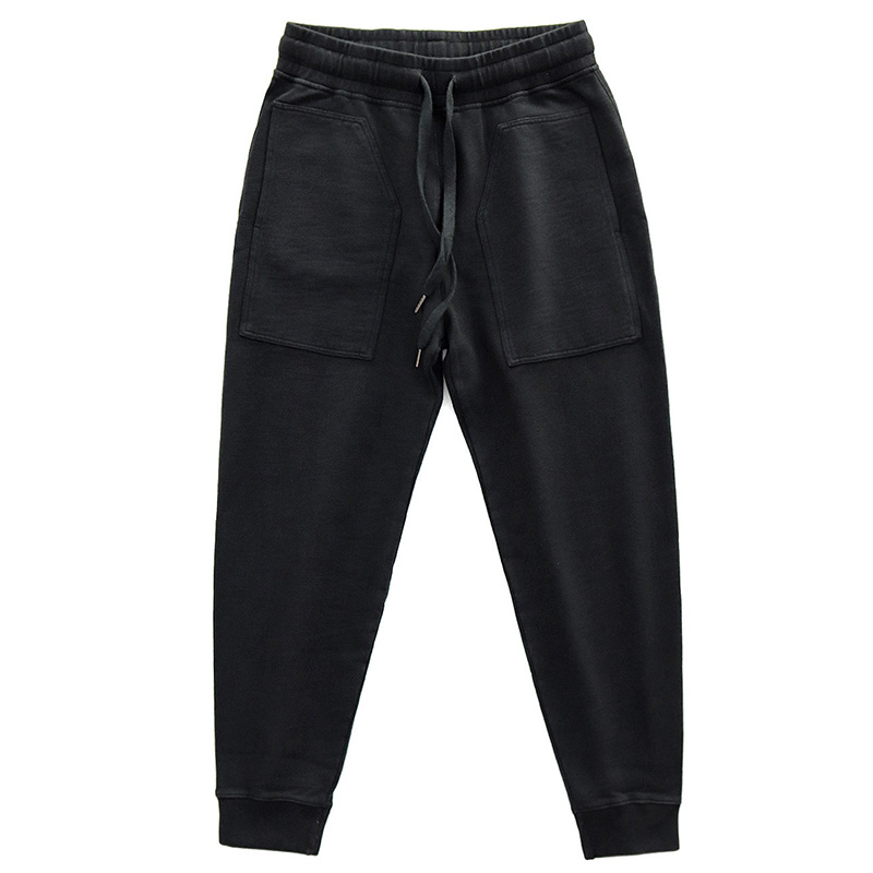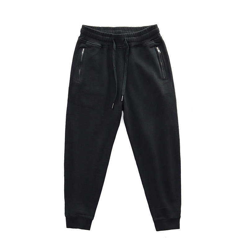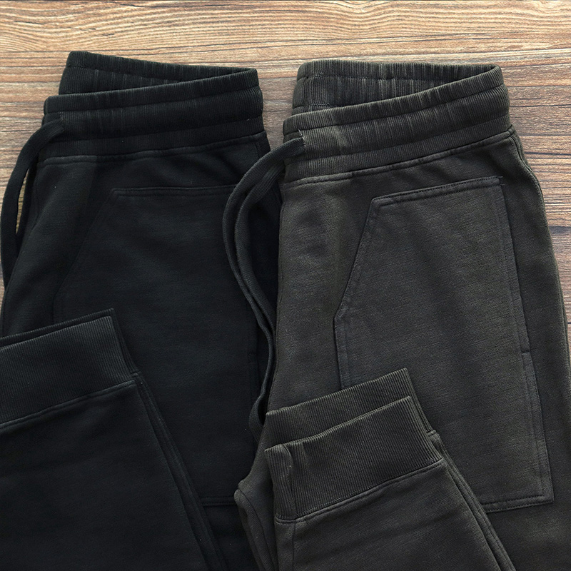 纯棉针织裤男美式复古做旧抽绳秋冬加绒运动裤休闲收口束脚卫裤男