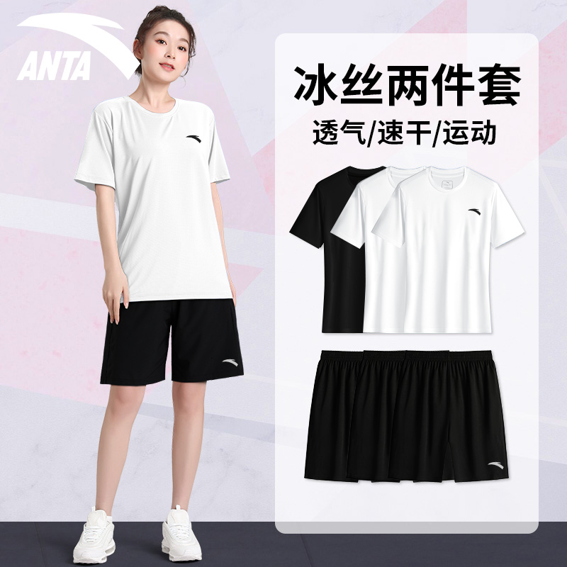 安踏运动套装女夏季速干透气短袖2025新款百搭休闲t恤短裤两件套