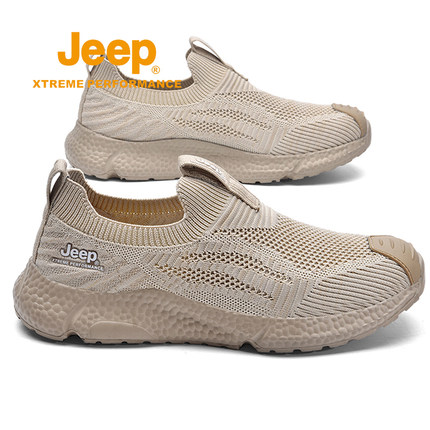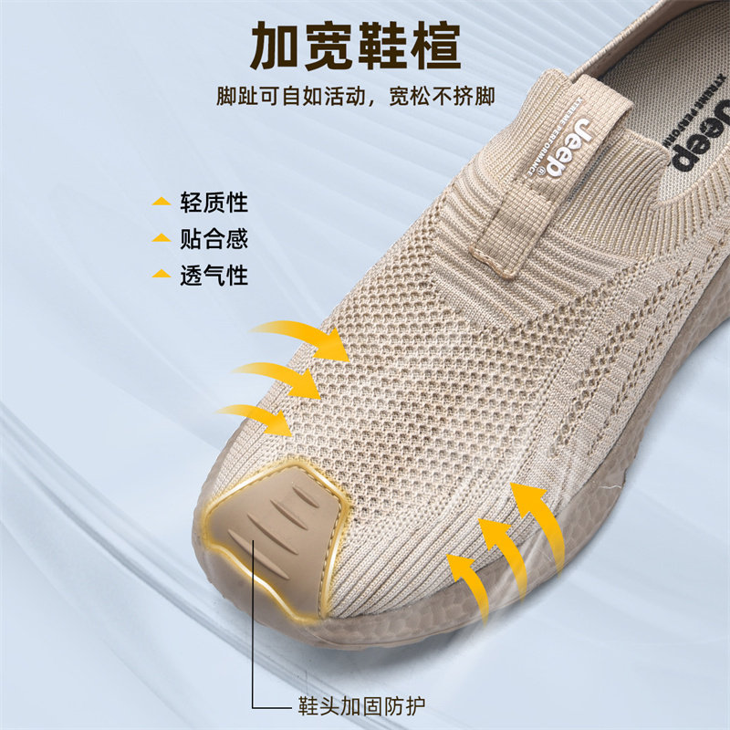 jeep一脚蹬男鞋夏季透气网面登山鞋防滑软底爸爸休闲懒人鞋子男款