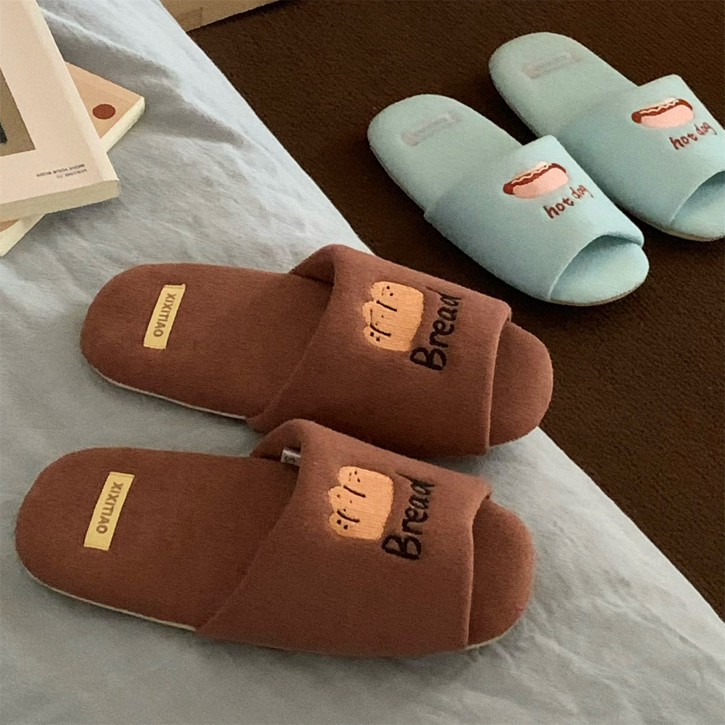 细细条 四季静音软底地板鞋男女日式ins居家用情侣布艺棉拖鞋春秋