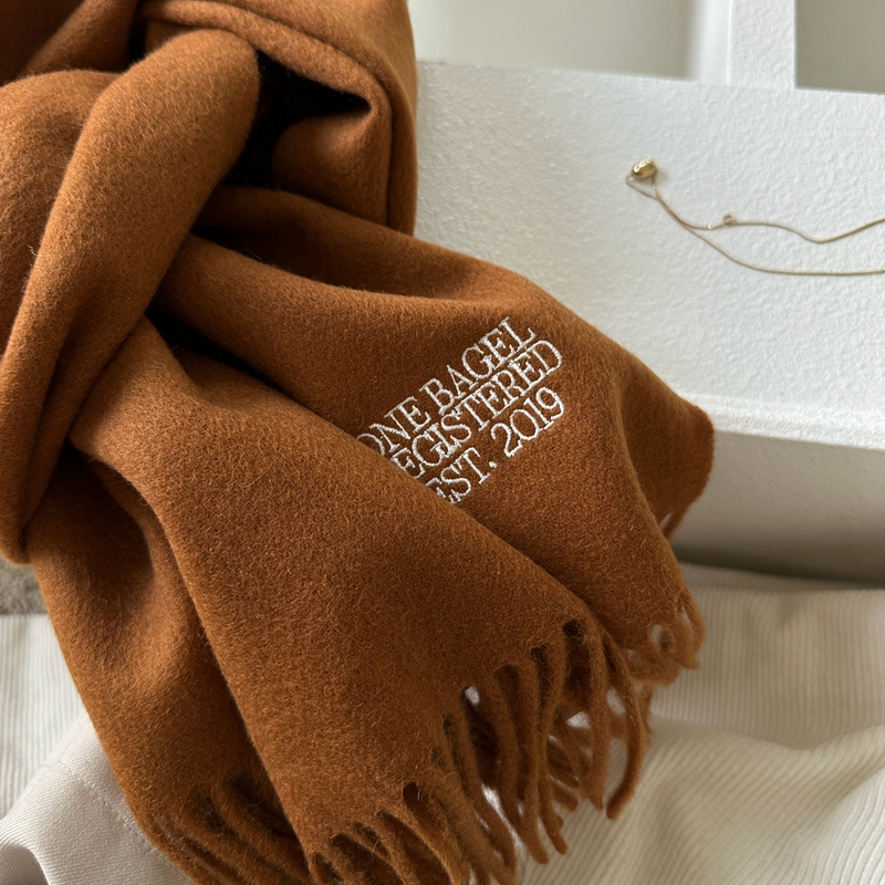 秋冬新品韩范基础款羊毛围巾100wool纯色刺绣款流苏男女款围脖