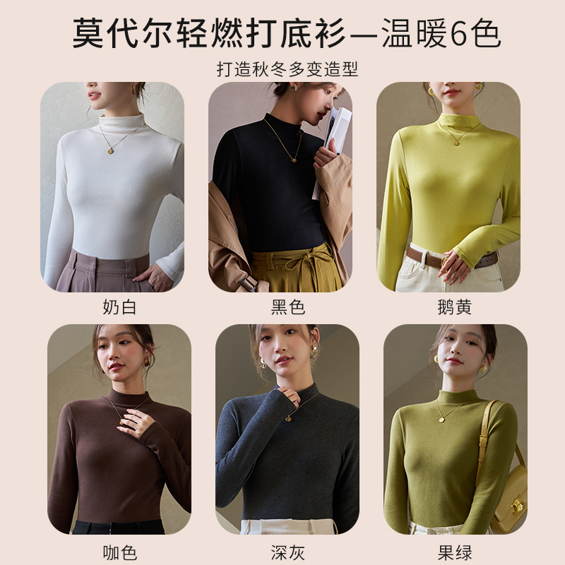 猫人半高领莫代尔打底衫女秋冬