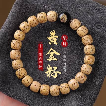 原生态黄金籽星月菩提手串十二生肖菩提手串单圈本命佛文玩手链男