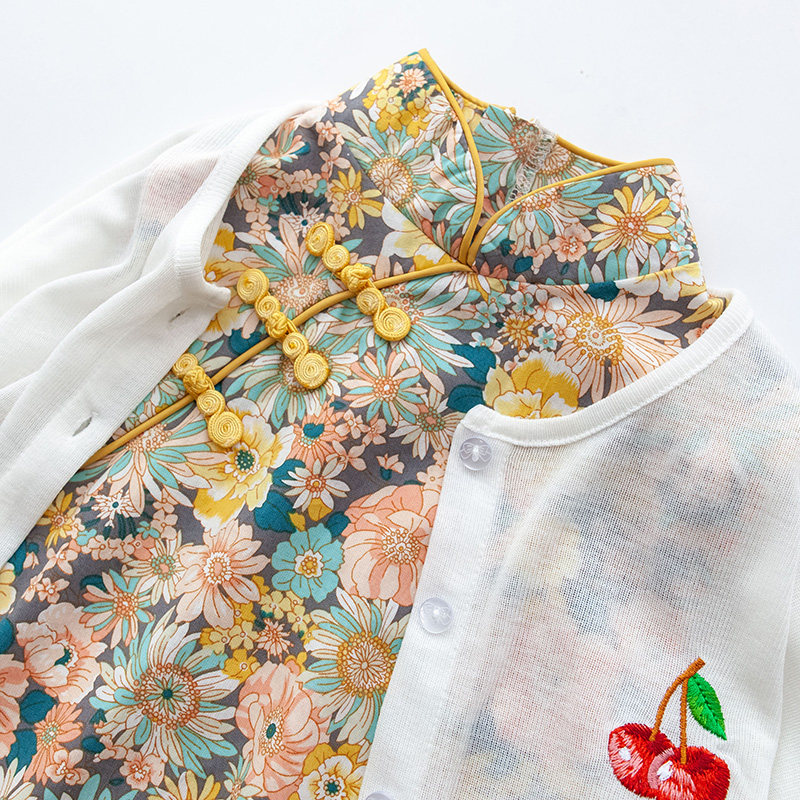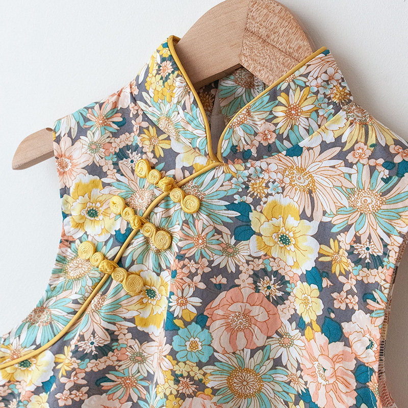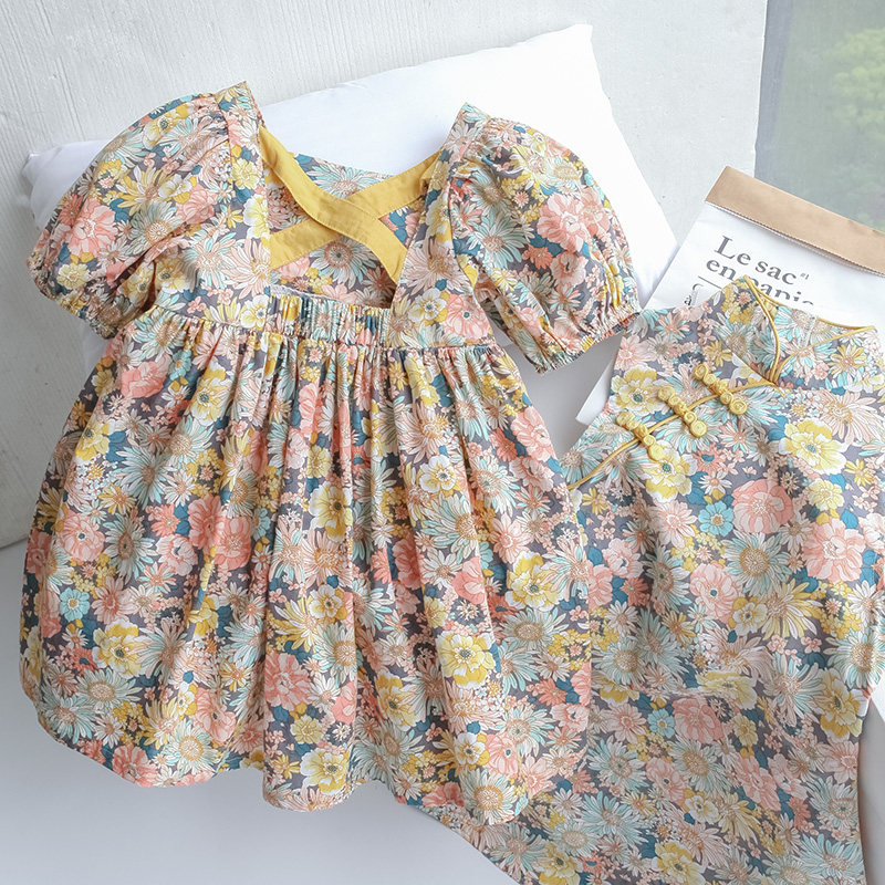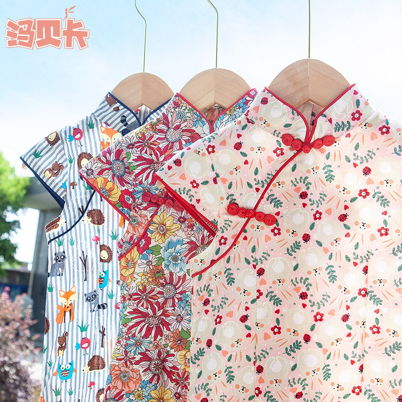 女童旗袍2024夏装新品女宝儿童中国风连衣裙全棉复古风中大童唐装