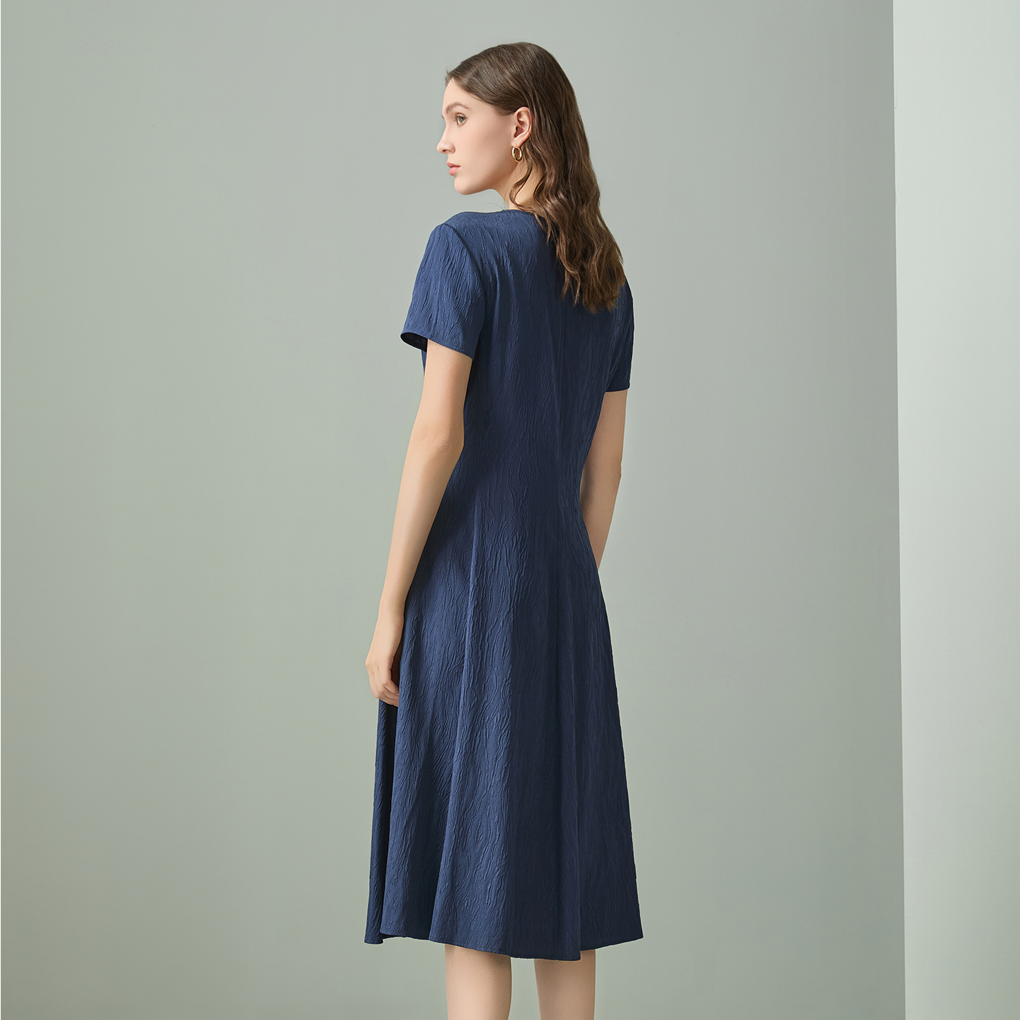 鹿王桑蚕丝连衣裙女士圆领短袖