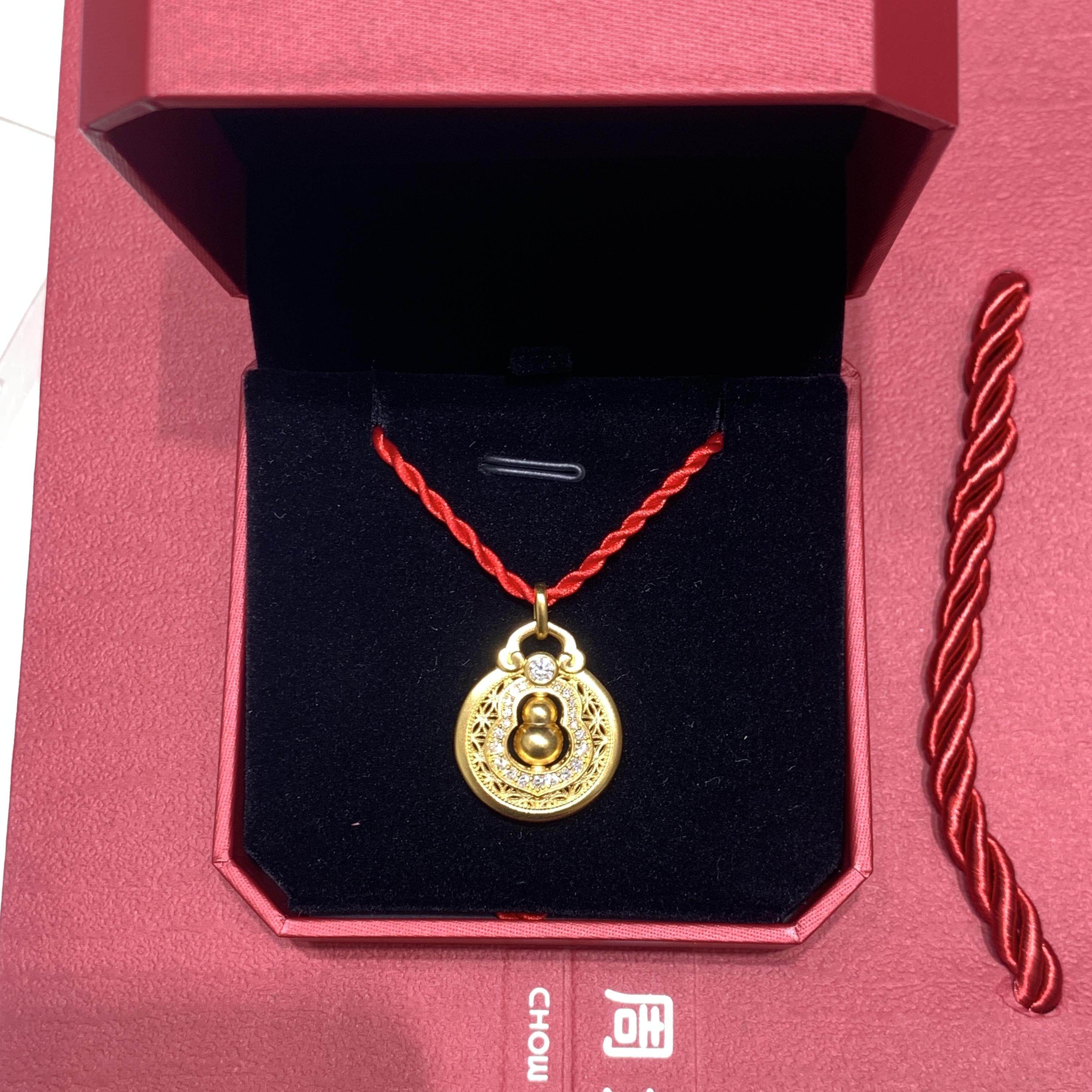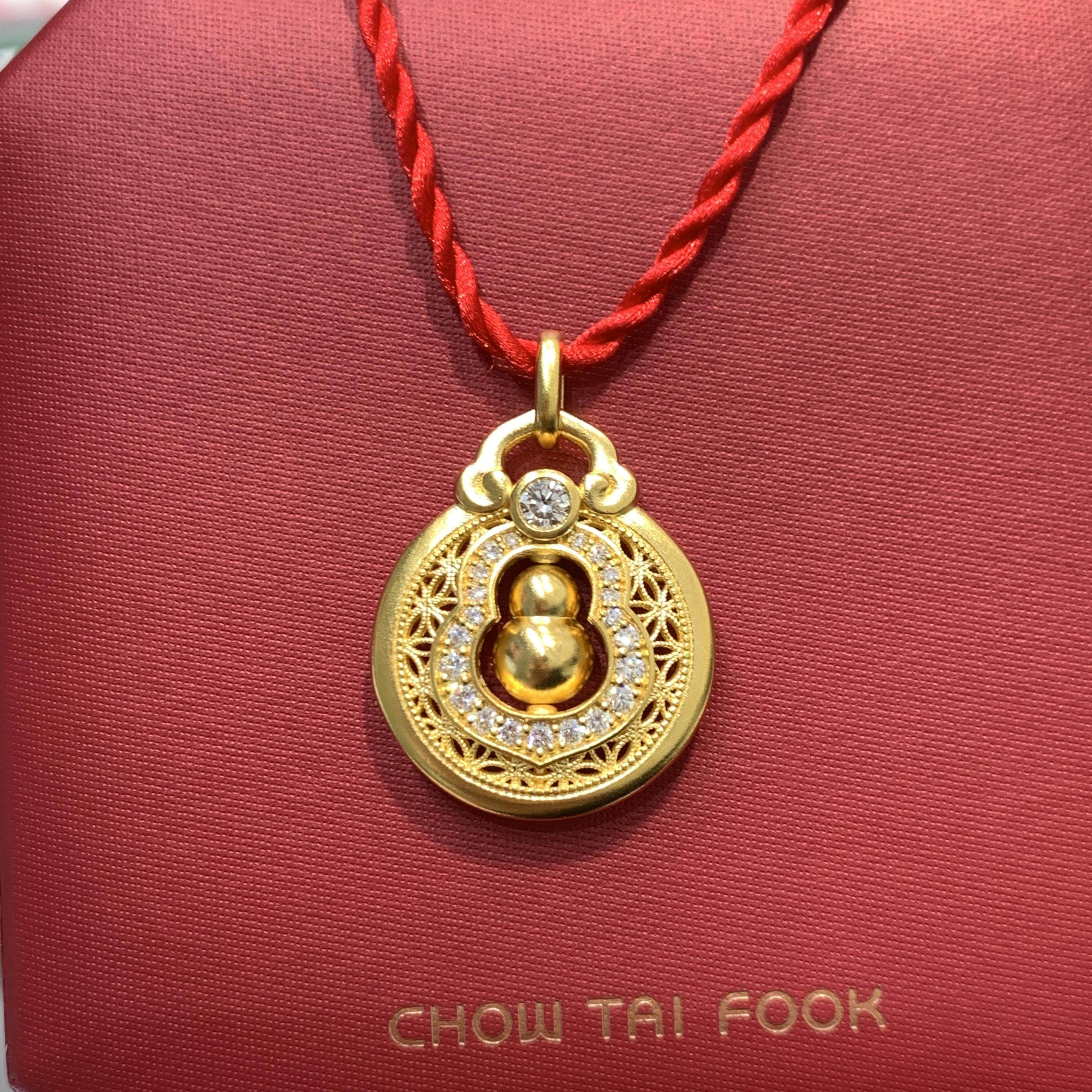 周大福代购 人生四美系列福禄连理镶嵌黄金吊坠女 定价七折 RU374