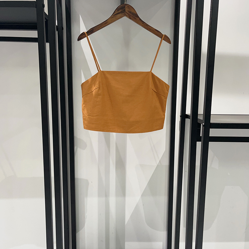 高圆圆~款2025早秋新款舒适透气亚麻小吊带前排扣开衩长裙女套装