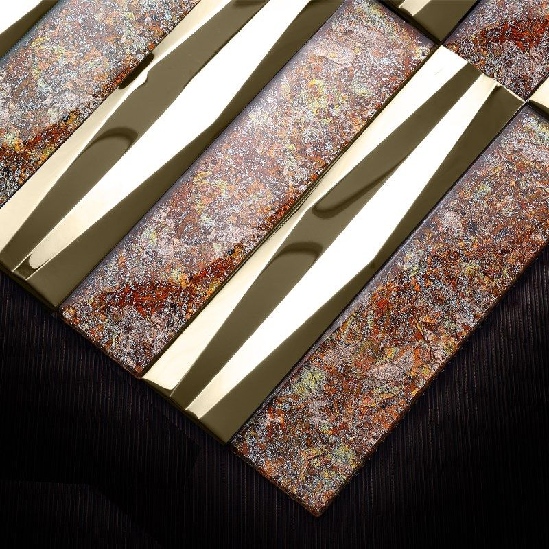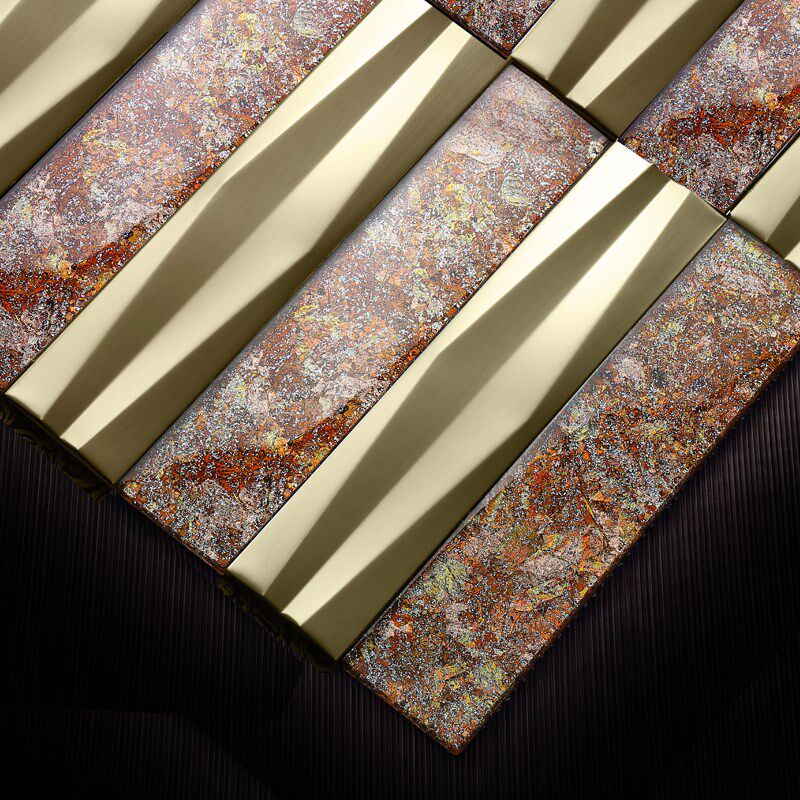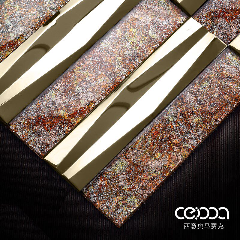 端欧式复古长条立体金属玻璃马赛瓷砖酒店会所店铺艺术背景墙