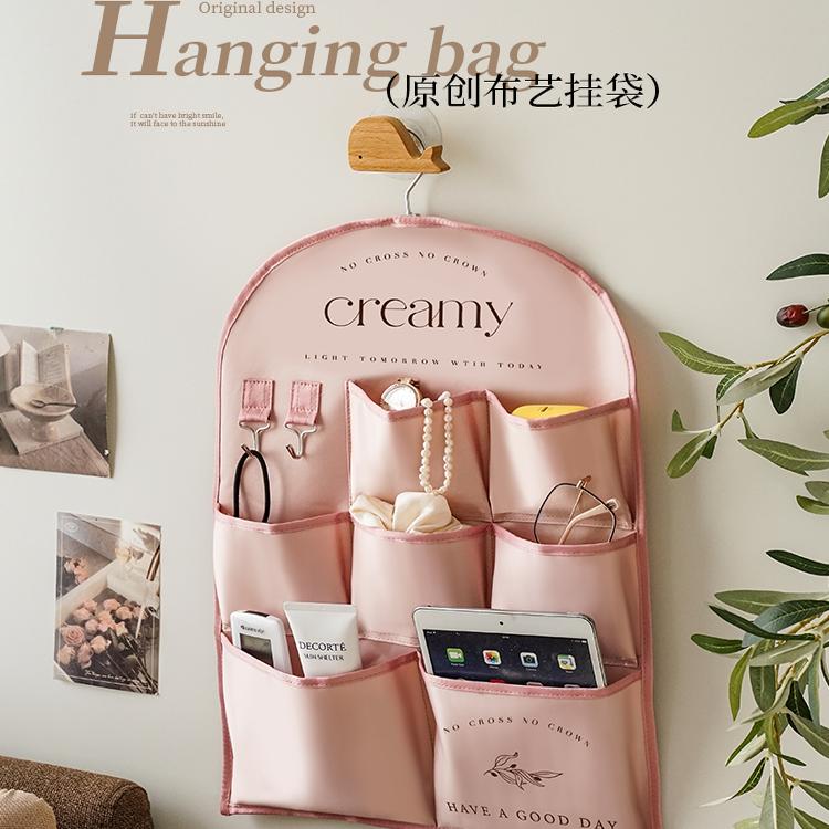 布艺挂墙收纳袋学生宿舍床头床边墙上悬挂式手机眼睛置物挂袋门后