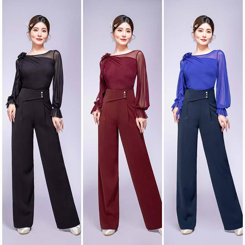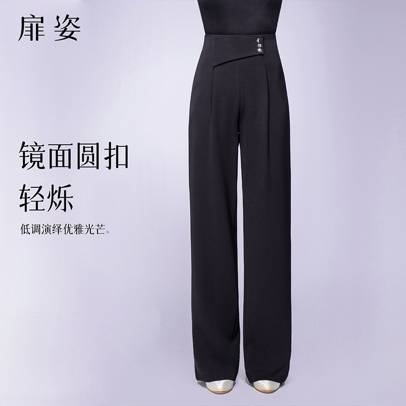 扉姿洋气新款秋高档摩登舞裤子女士专业交谊舞西裤高腰长裤F2131