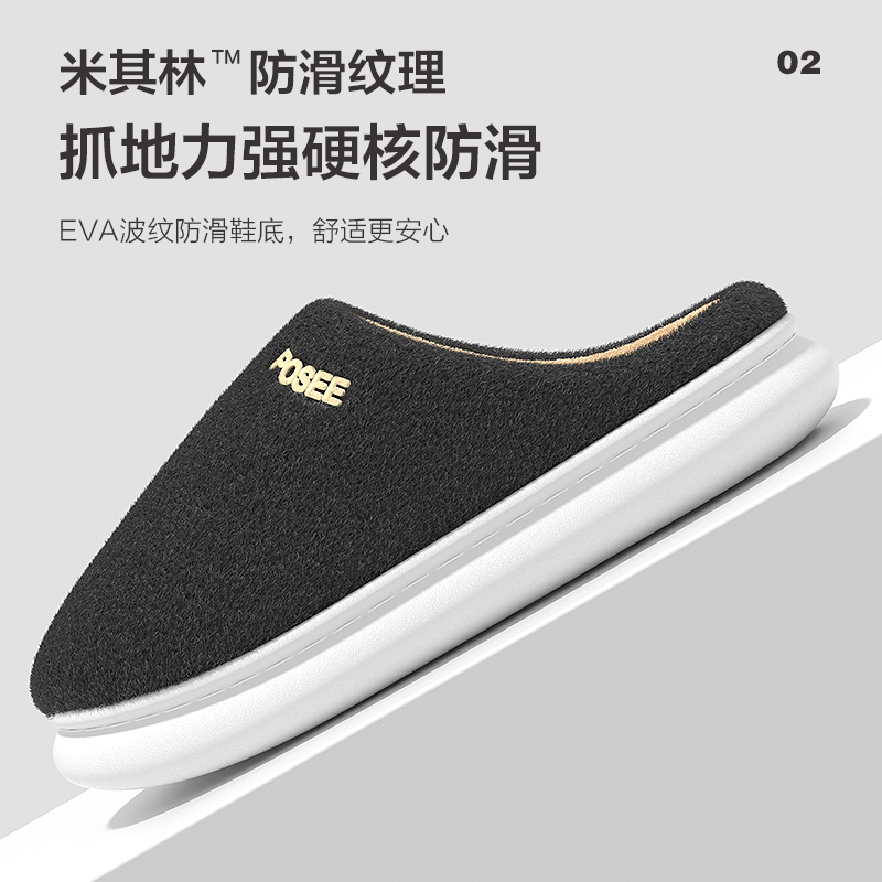 朴西新款秋冬季男士居家保暖棉拖鞋简约防滑软底室内情侣棉拖鞋女