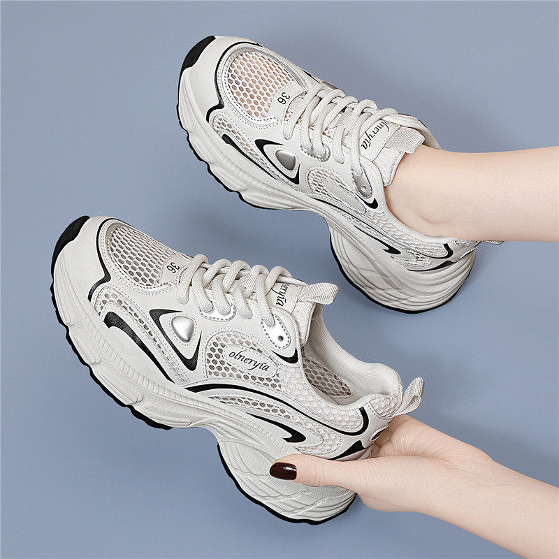 真皮老爹鞋女软底透气2025夏季网面凉鞋轻便百搭旅游休闲 运动鞋