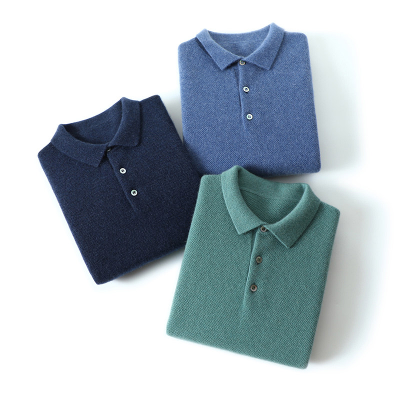 意大利重工艺!加厚衬衫领男士山羊绒衫纯羊绒毛衣休闲针织衫男冬