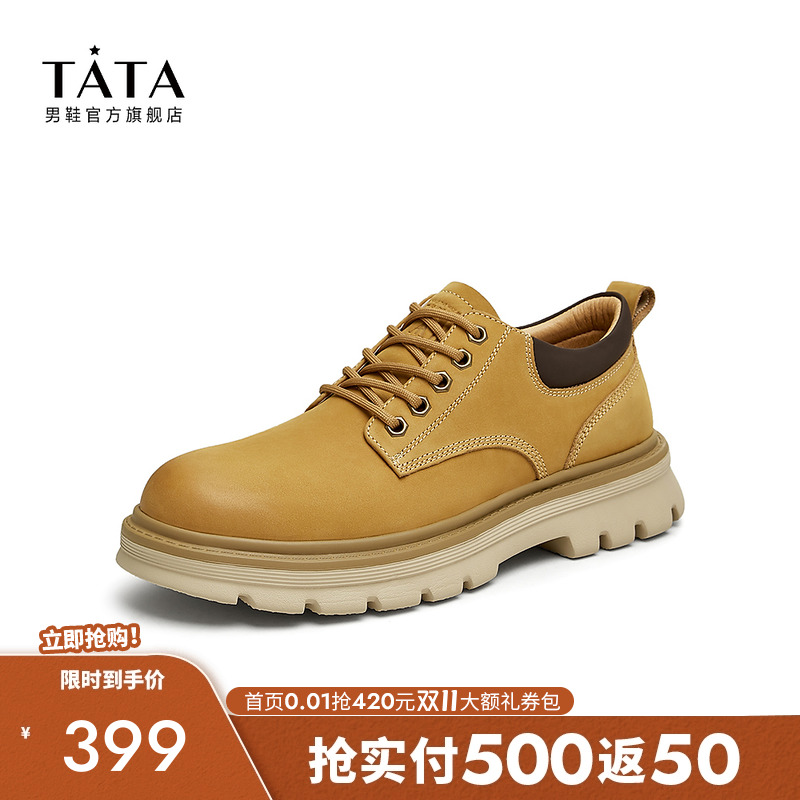 Tata他她复古棕色工装鞋男士户外皮鞋真皮马丁单鞋男冬季VKH01DM4
