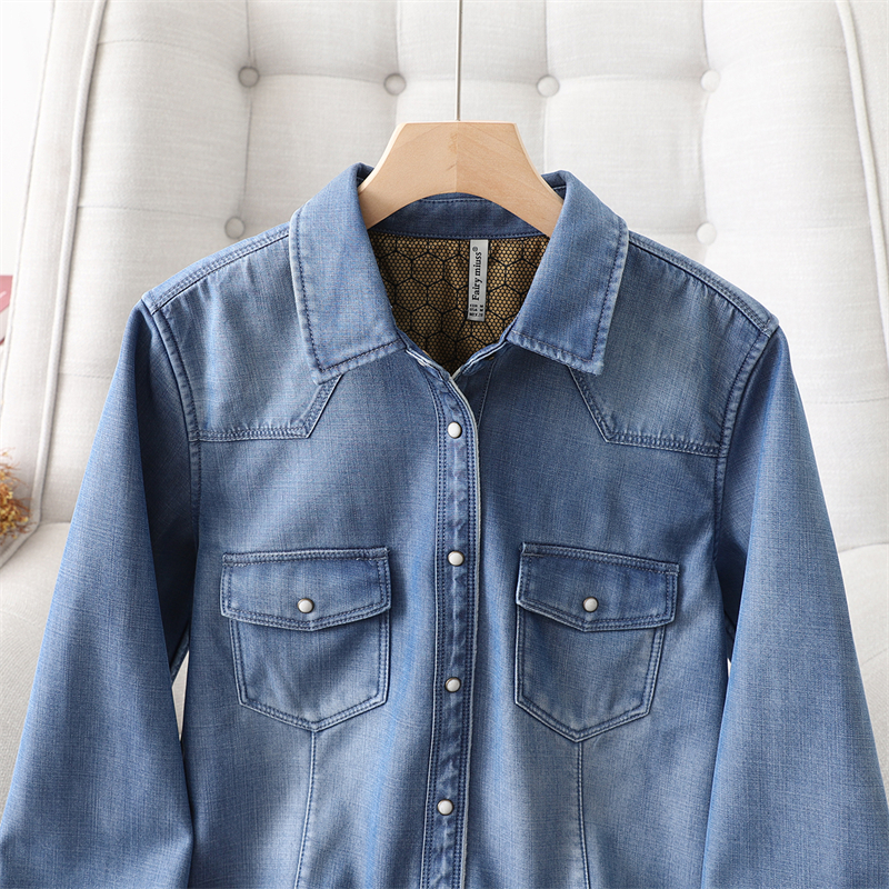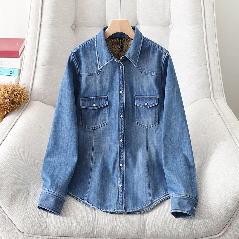 欧货高端加绒保暖牛仔衬衫女