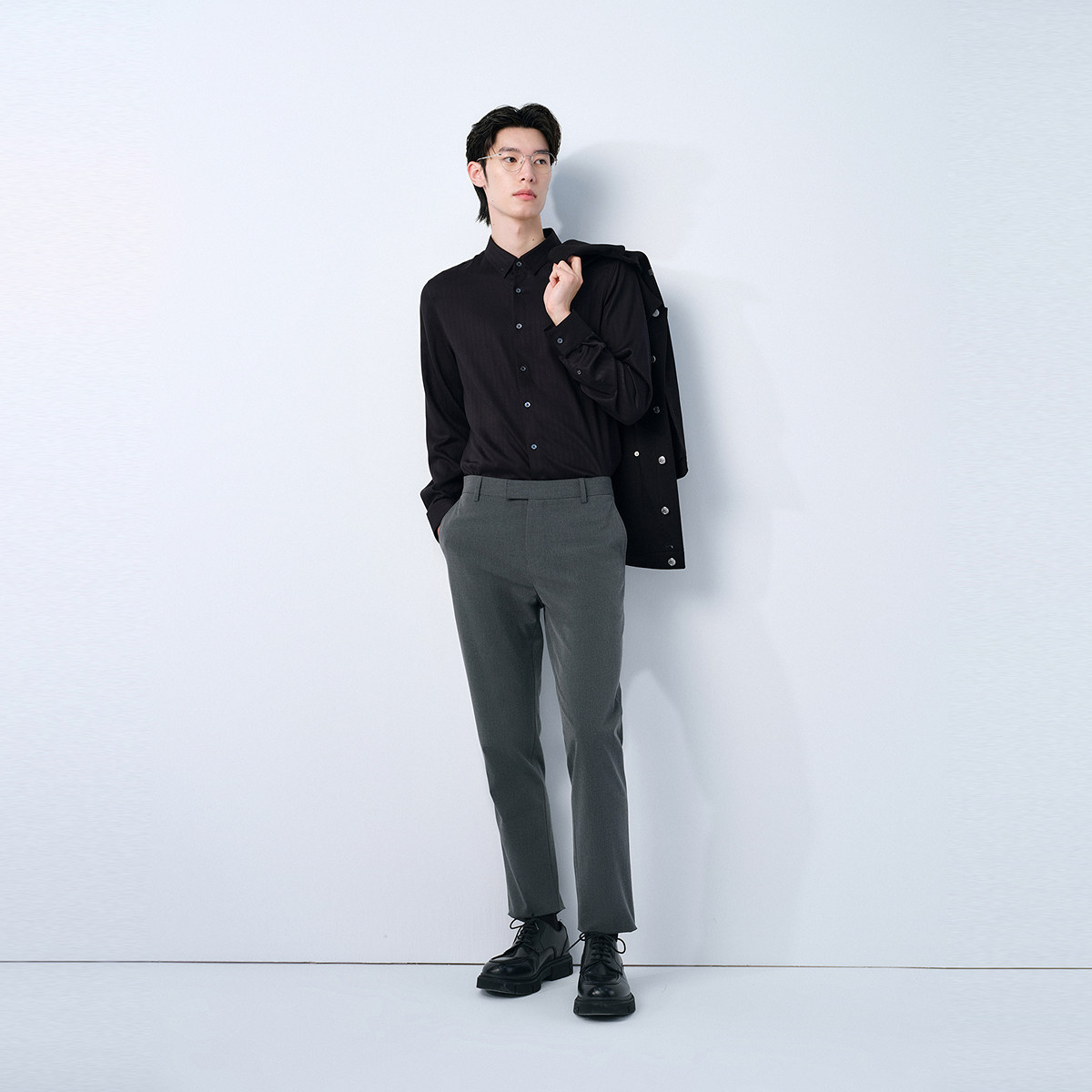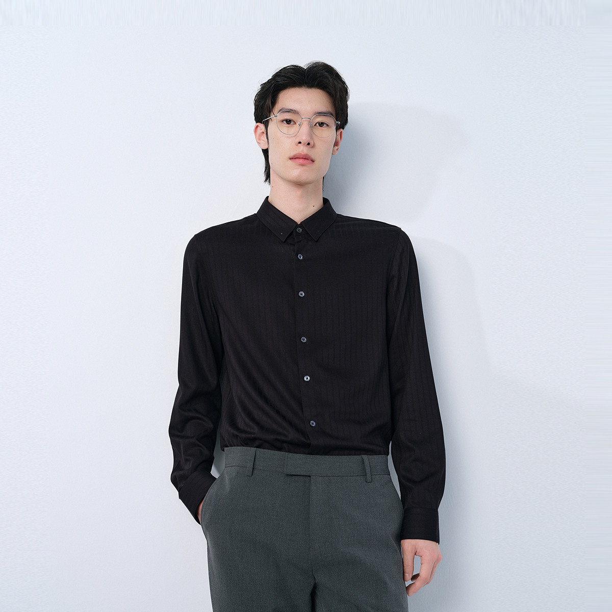 【易打理竹纤维】太平鸟男装 休闲衬衫春斯文衬衫内搭衬衫