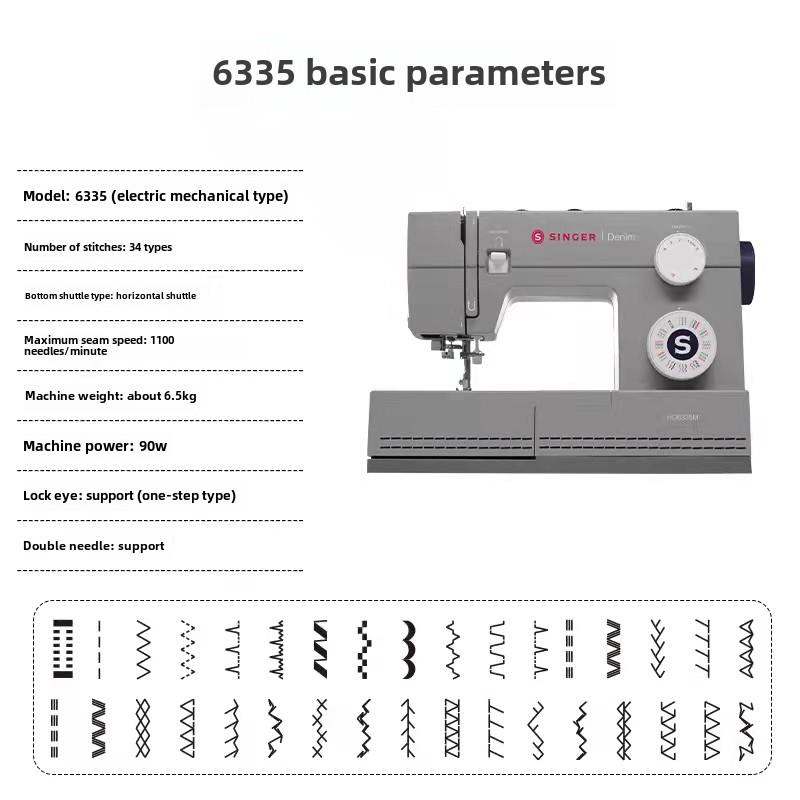 SINGER胜家缝纫机4423电动家用多功能锁边6335加工档案大功率吃厚