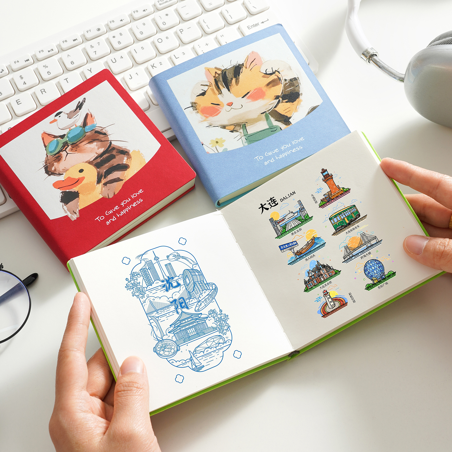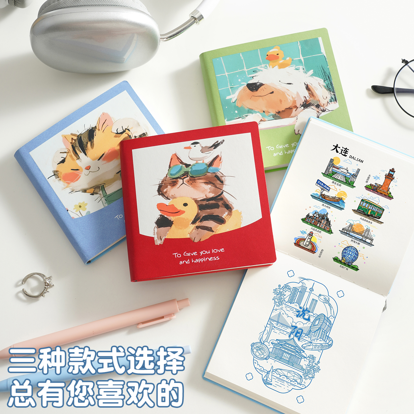方形口袋本活页空白笔记本本子旅行打卡盖章收集本印章集章册高颜值手帐本绘画本ins风油画风好看的日记本子