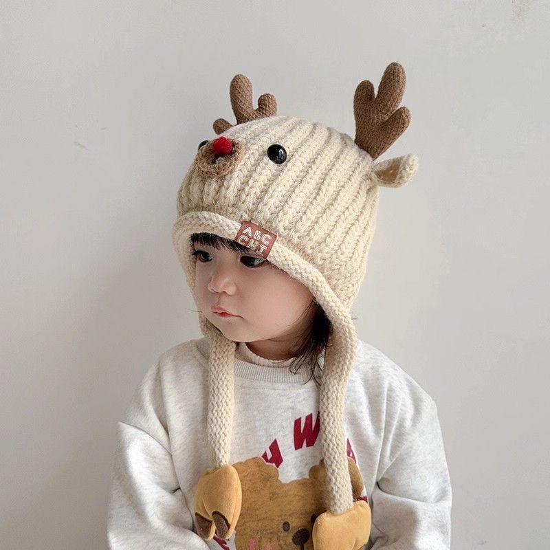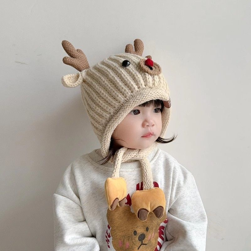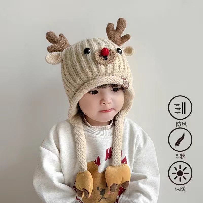 宝宝帽子冬季麋鹿造型护耳帽男孩女童针织帽秋冬天加厚保暖毛线帽