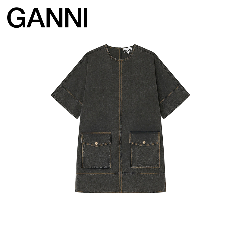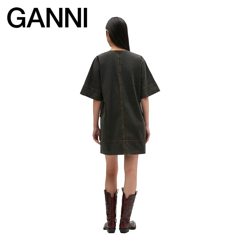 【早秋新品】GANNI女装 简约优雅圆领撞色缝线连衣裙 W0793099