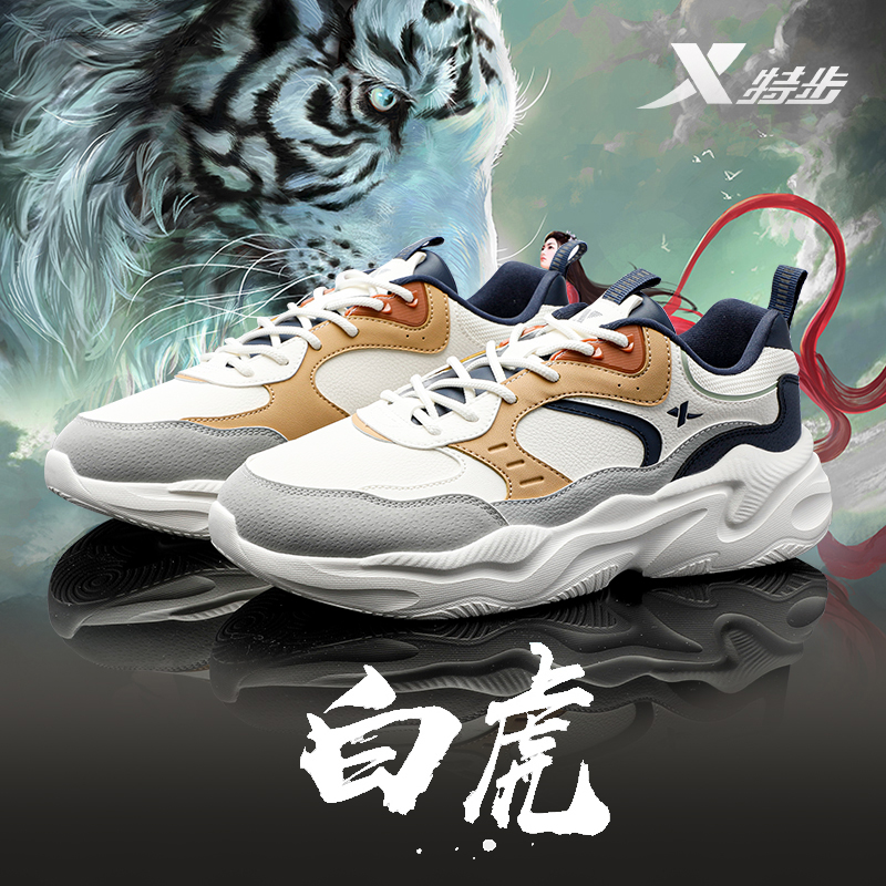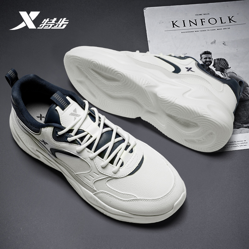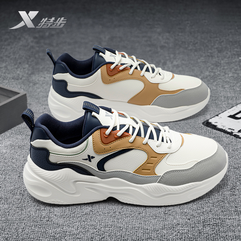 特步跑步鞋男鞋官方正品2025秋季新款休闲老爹鞋青少年皮面运动鞋
