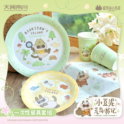 暹罗猫小豆泥-小豆泥荒岛游记系列一次性餐具套组盘子杯子餐巾纸套装天闻角川周边正版授权现货