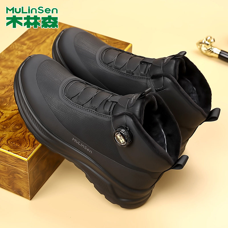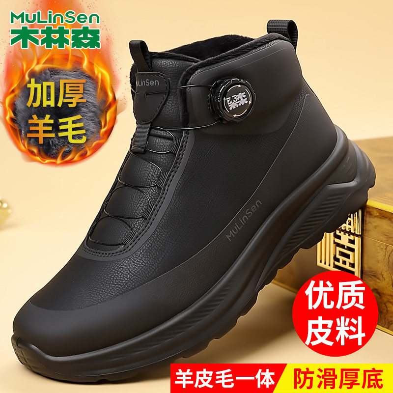 木林森冬季棉鞋男加绒加厚保暖防滑雪地靴男羊皮毛一体东北大棉鞋