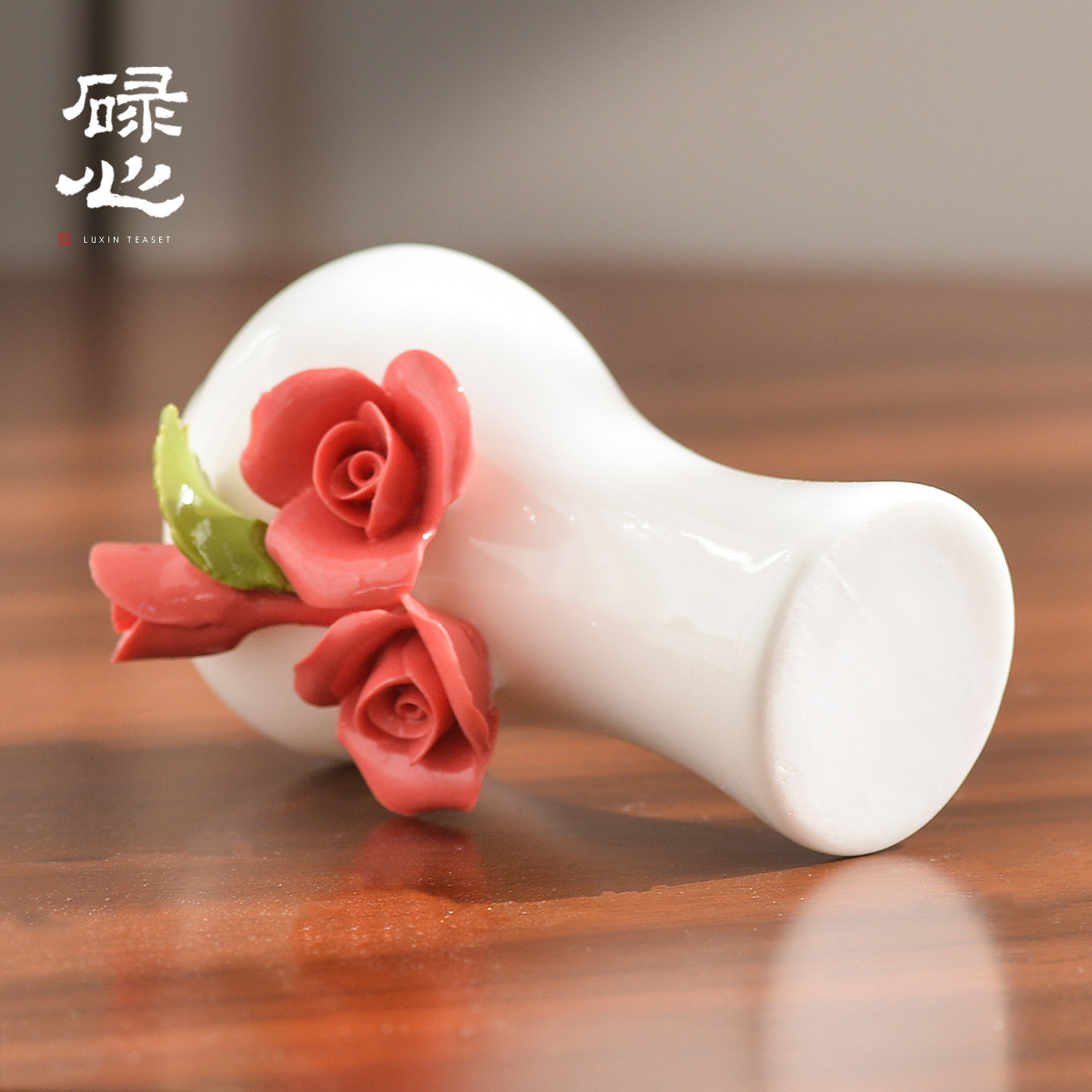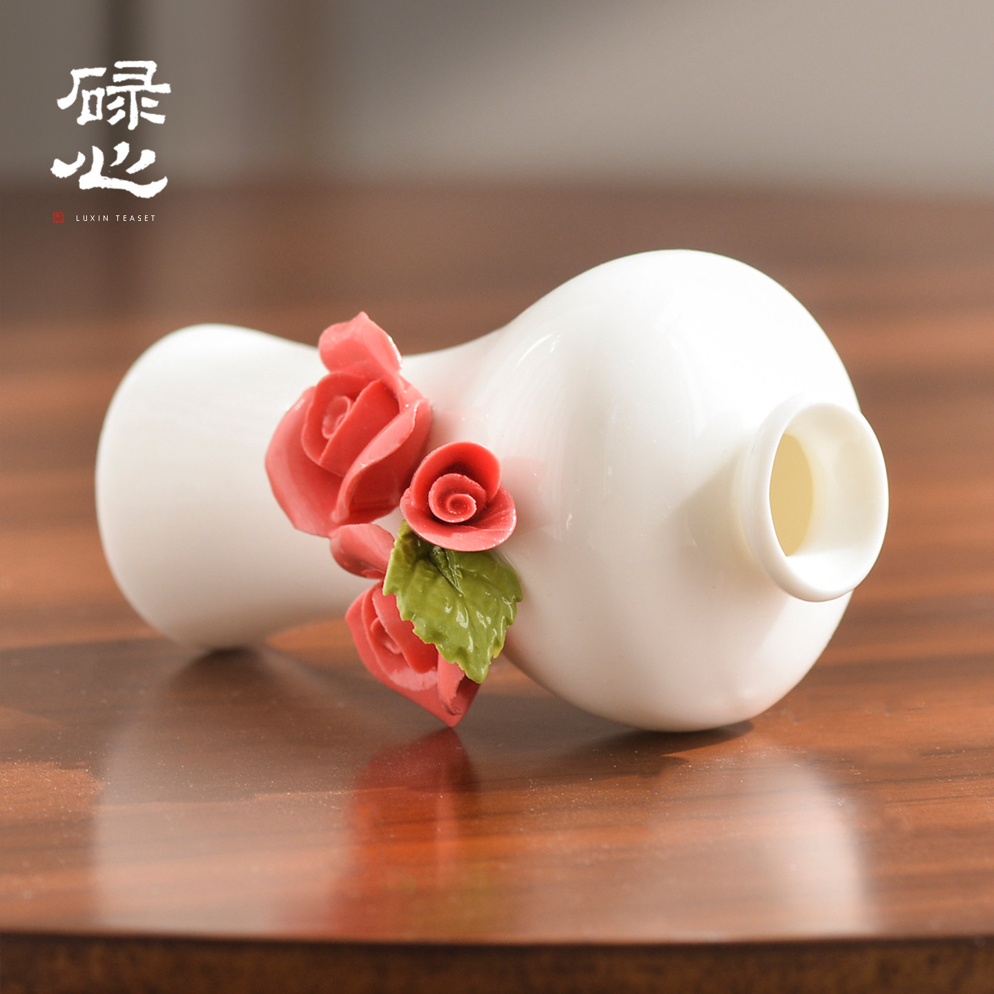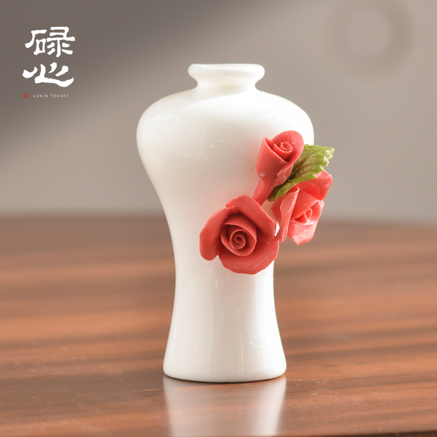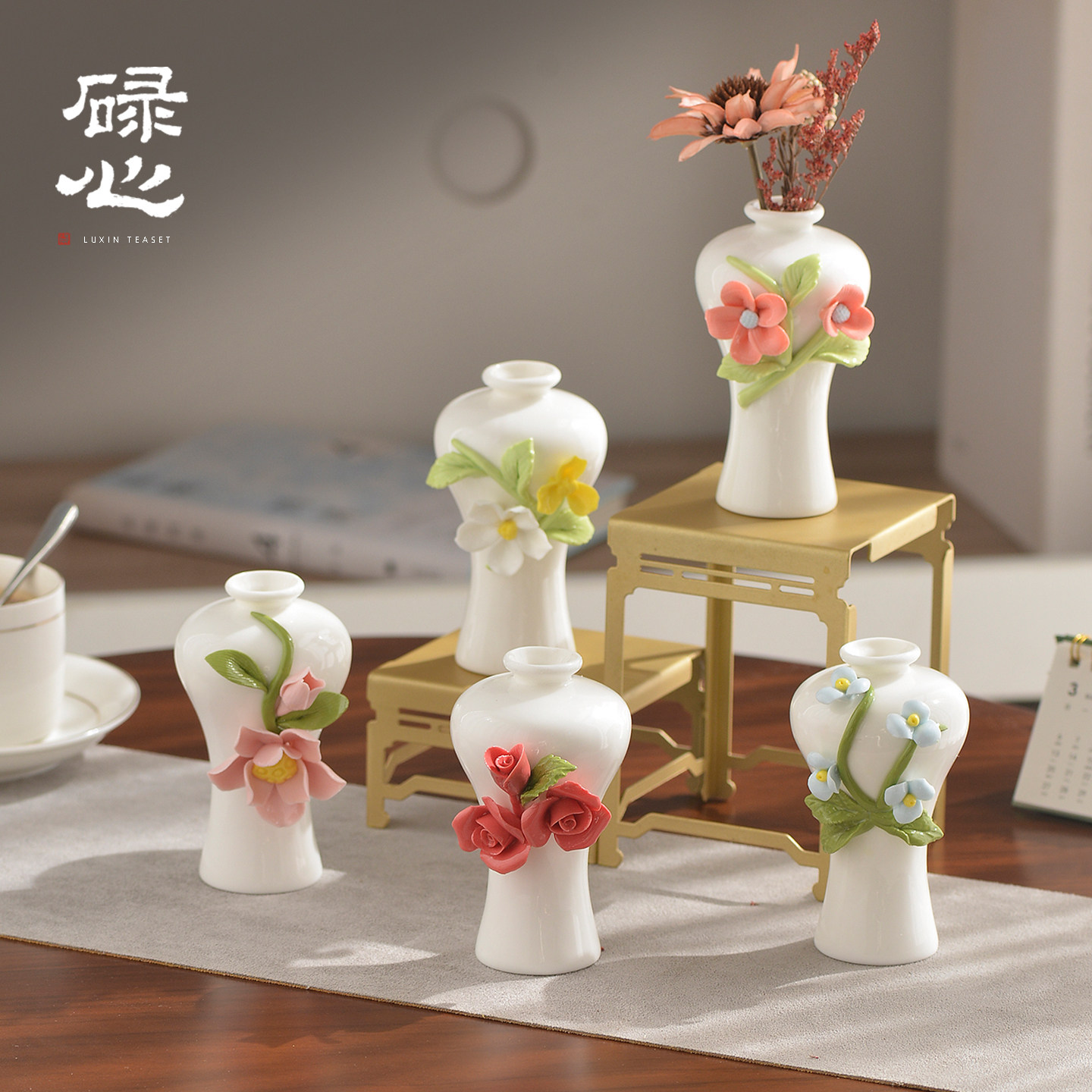 碌心 陶瓷捏花小花瓶桌面清新花器装饰摆件 客厅小花插陶瓷美人瓶