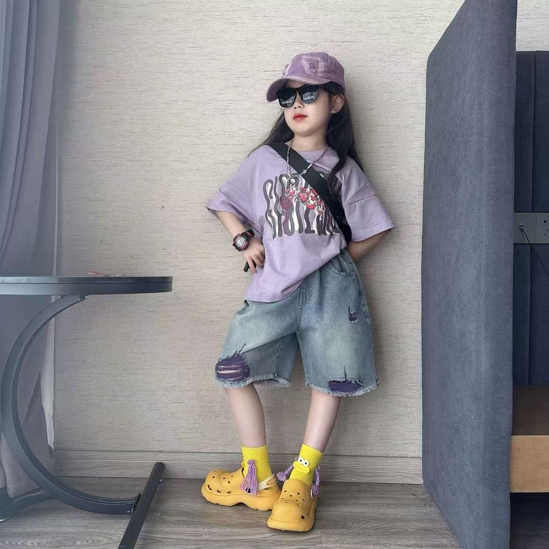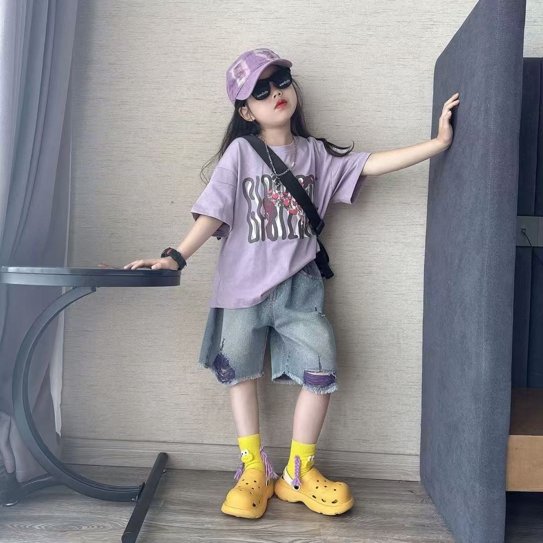 女童夏季套装2025年新款韩版时髦洋气中大童童装纯色无袖两件套潮