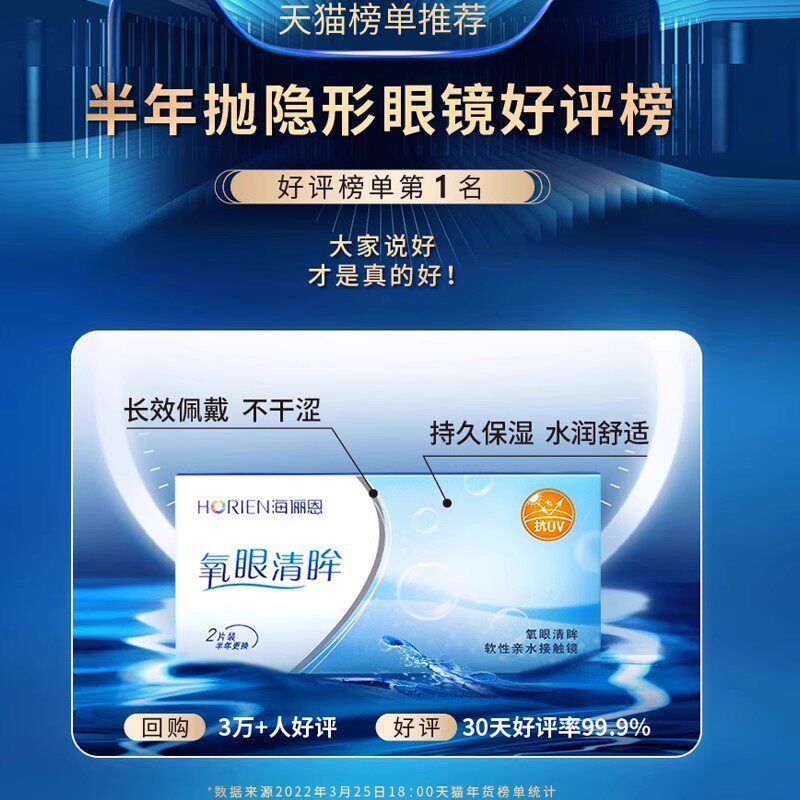 海俪恩半年抛隐形近视眼镜2片装小直径透明带度数官方正品旗舰店