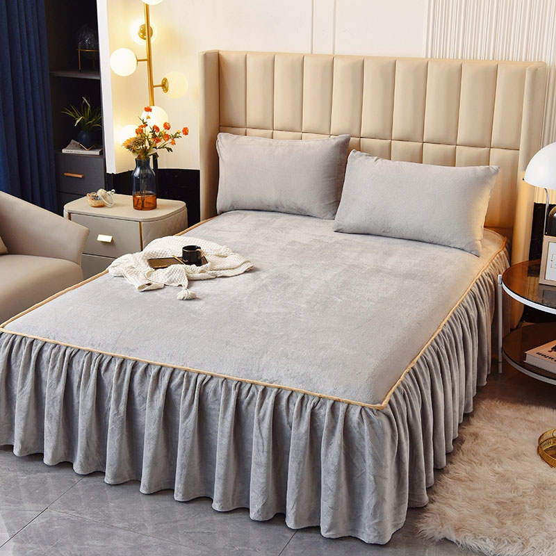 牛奶绒加厚保暖床罩床裙式床套单件保护套1.5米1.8m180x200三件套