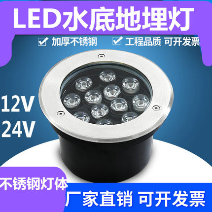 led水底地埋灯嵌入式不锈钢广场景观12V水下灯泳池壁灯七彩喷泉灯