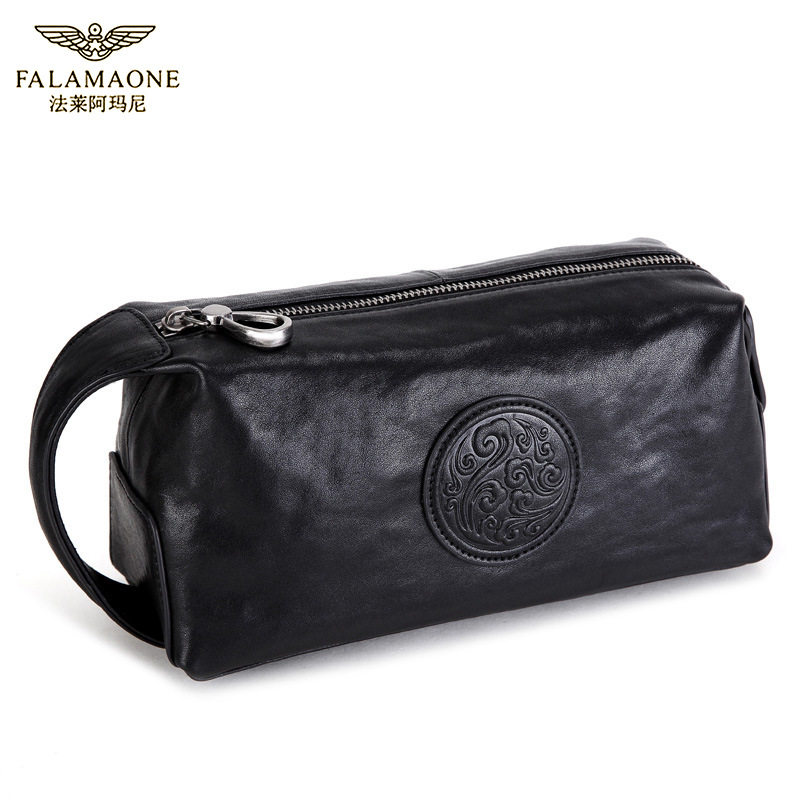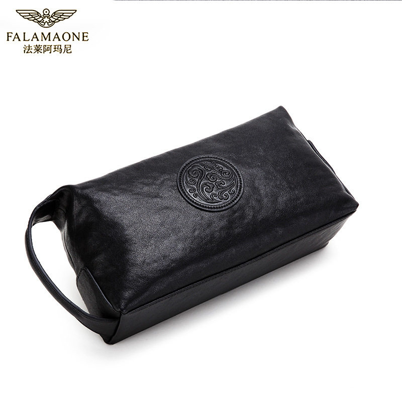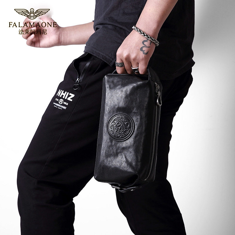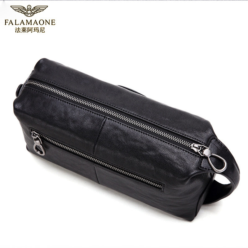仅亏一天牛皮法莱阿玛尼轻奢男士手包百搭夹包商务休闲男包腋下包
