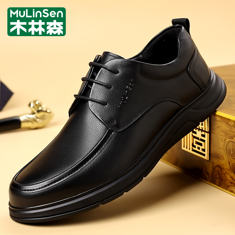 木林森皮鞋男春季商务休闲头层牛皮软底防滑爸爸结婚新郎开车潮鞋