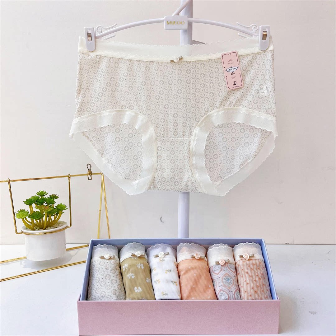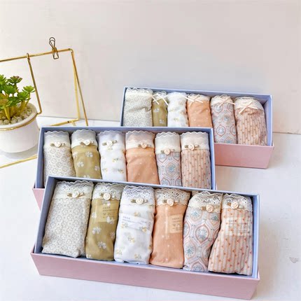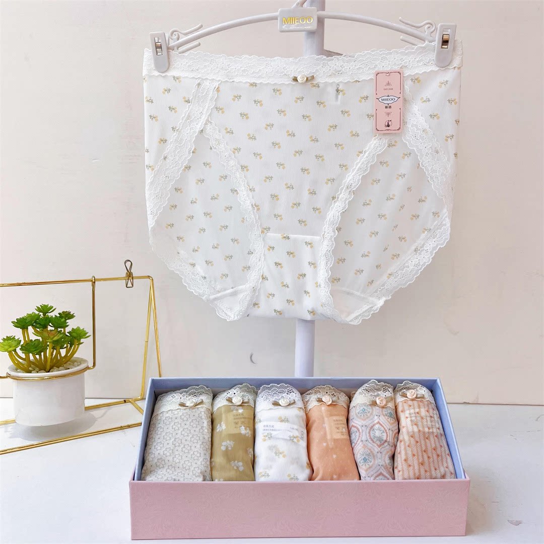 中腰内裤秘语蕾丝平角印花盒装