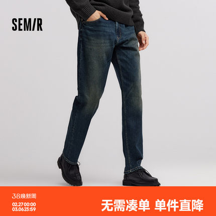 森马牛仔裤男冬莱卡弹力赤耳丹宁宽松直筒裤复古水洗时尚提花裤子