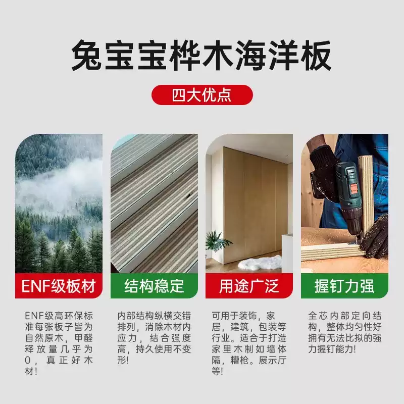 兔宝宝进口ENF桦木海洋板多层板免漆生态板优等家具木工定制板材S