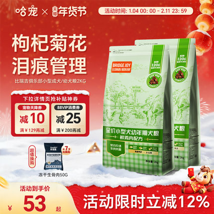 比瑞吉狗粮2kg比瑞吉俱乐部小型犬全价幼犬粮泰迪贵宾比熊奶糕粮