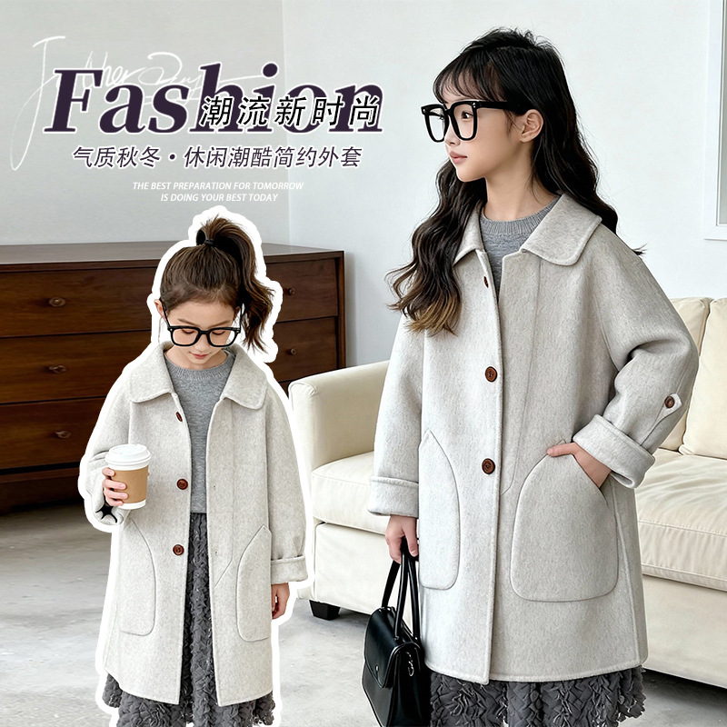 女童双面羊绒大衣2025新款秋冬季韩版儿童羊毛呢子外套中长款